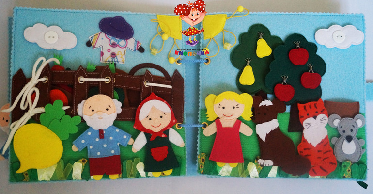 Игровой материал, содержащийся в книге, направлен на развитие речи, логики, памяти, внимания, тактильных ощущений, мелкой моторики, координации, сенсорики и фантазии. Все герои одеваются на пальчики, мы играем всей семьей )))