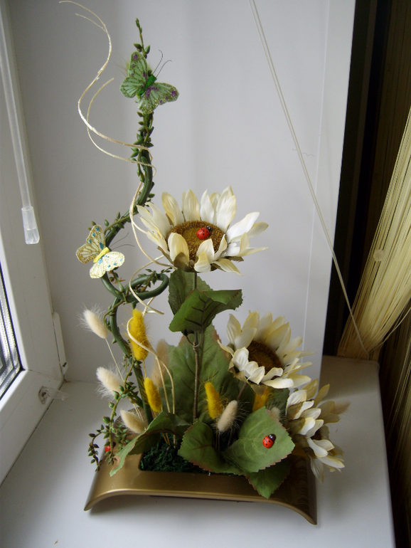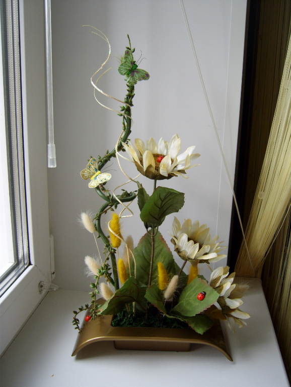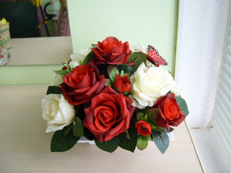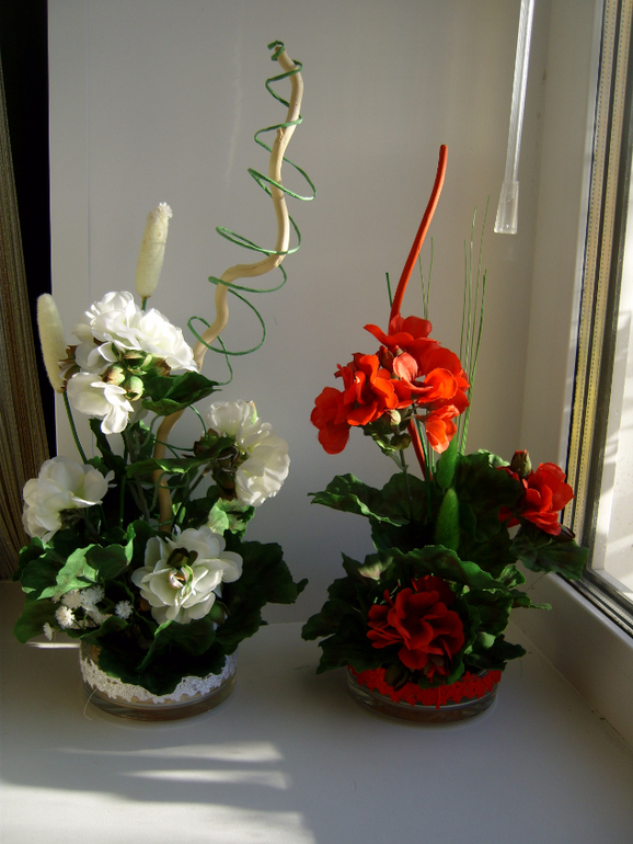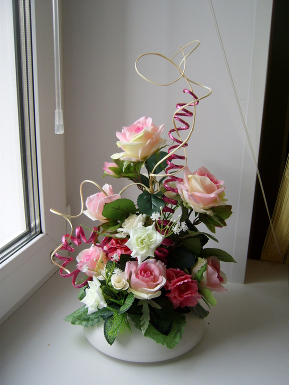 В первой я Б завитушки розовые убрала, на новогодку смахивает((( как будто осталось лишнее не знали куда деть! С красными розами красивая композиция, но по мне кашпо повыше бы, низко получилось .