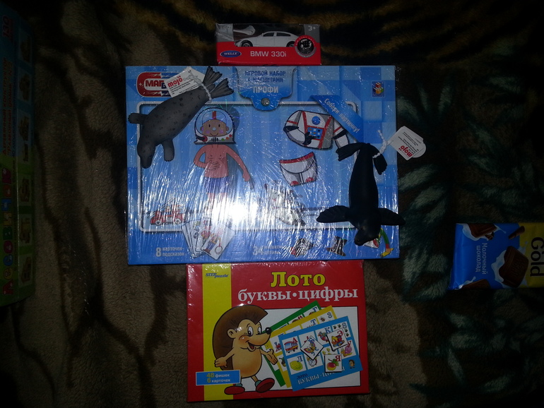 Это младшему фигурки классные животных,БМВ,магнитный игровой набор,лото