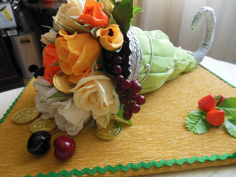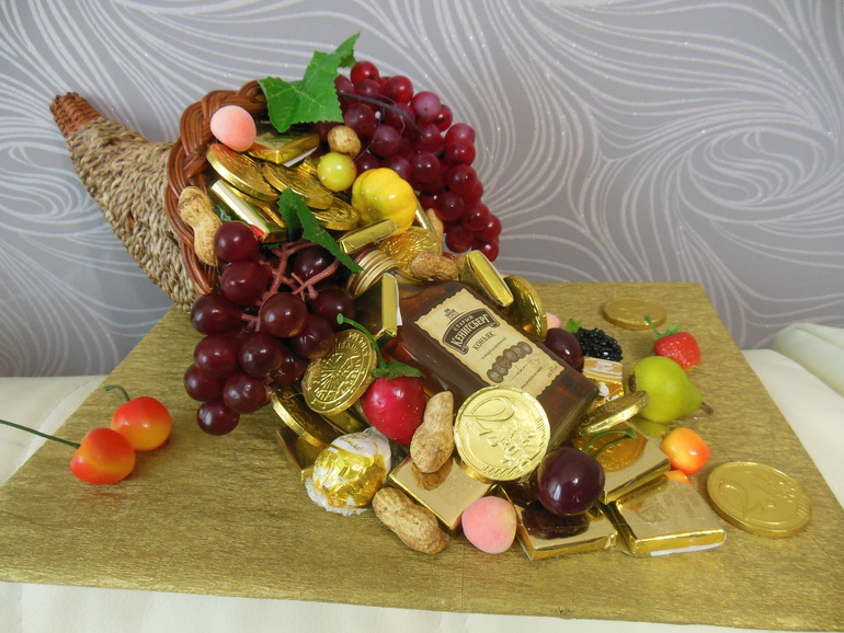 Красота! и правда много! Рог изобилия привлек внимание, упавшее лукошко и необычный денежный кран. Присоединюсь по поводу фона, однотонный нужен, попросту для начала скатерть или ватман.