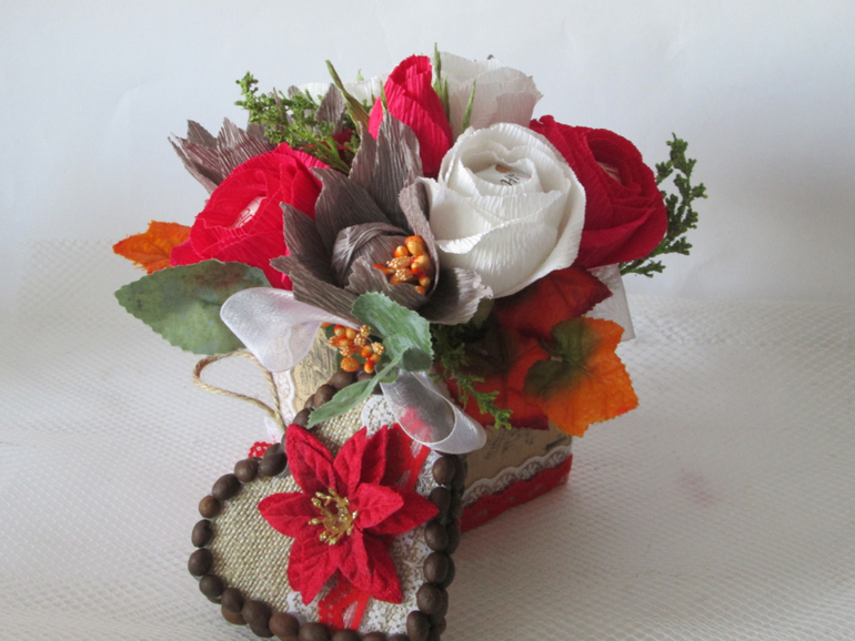 Дин, привет! красотища какая! я вот не умею украшалки делать на коробки конфет)))) ты цветы во что "втыкаешь"?) и как к коробке крепишь?