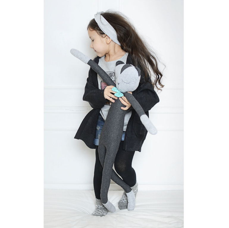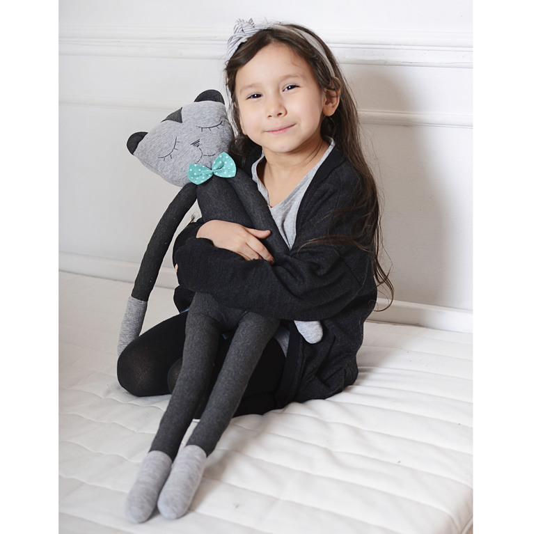Кота-сплюшку я тоже сшила из мужских футболок. Выкройку рисовала сама. Глазки и носик вышивала. А вот про усы забыла