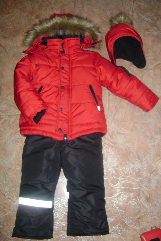 Курточка- выкройка оттобре 2006/1, на полочках альполюкс 200+100, в рукавах альполюкс 200, флис. В рукавах трикотажные манжеты, капюшон съемный на кнопках, опушка тоже съемная на кнопках. Полукомбез - таслан+ альполюкс 200. Шапка альполюкс 200, застежка на липучке.
