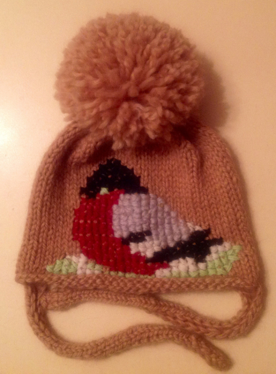 На этой шапочке я сделала вышивку крестиком, небрежность задумана специально