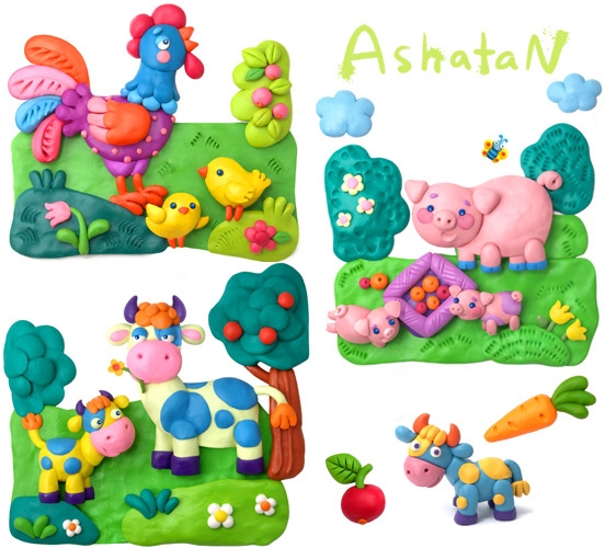 Поделки с детками.Эти чудесные картины выполнены из пластилина. Работа с пластилином очень полезное занятие для детей- она развивает мелкую моторику рук, воображение, творческие способности. Картину из пластилина можно поместить в рамочку и украсить детскую комнату.