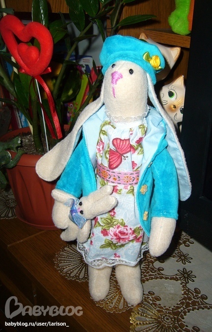 Жила -была Зая.И грустно ей стало,потому что была она некрасивая. Почему некрасивая? Спросите вы... Да потому что она была самая первая из зай,которых я сшила))) Нет,раньше то она мне казалась вполне ничего)))Но ,проходит время и вкусы меняются,и решила я свою первую заю тоже немного изменить,вот что вышло.