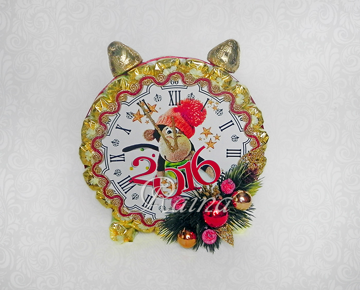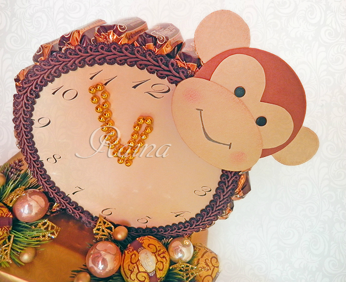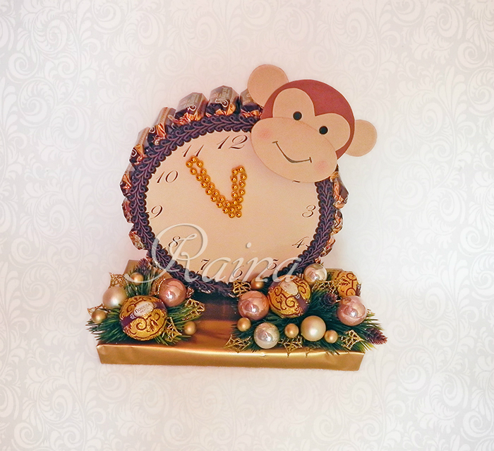 Раина, классные работы! Обезьянка милая, часики нарядные, а кулечек с настоящими мандаринками)))