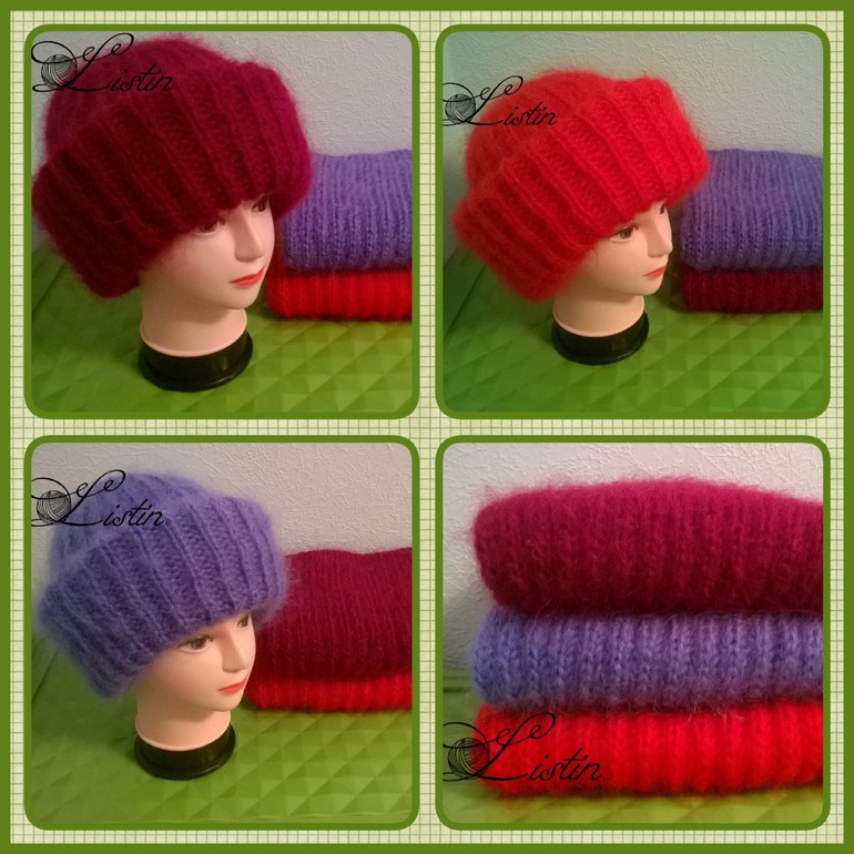 1. Всем хорошо известные шапочки из мохера с двумя отворотами