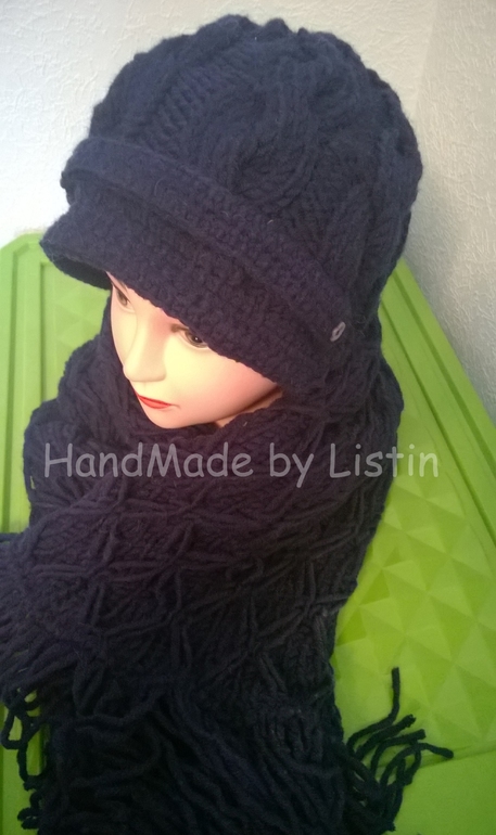 3. Еще один комплектик из толстенькой пряжи. Шапка косами и шарф.