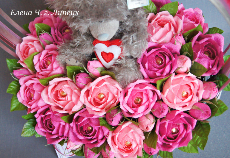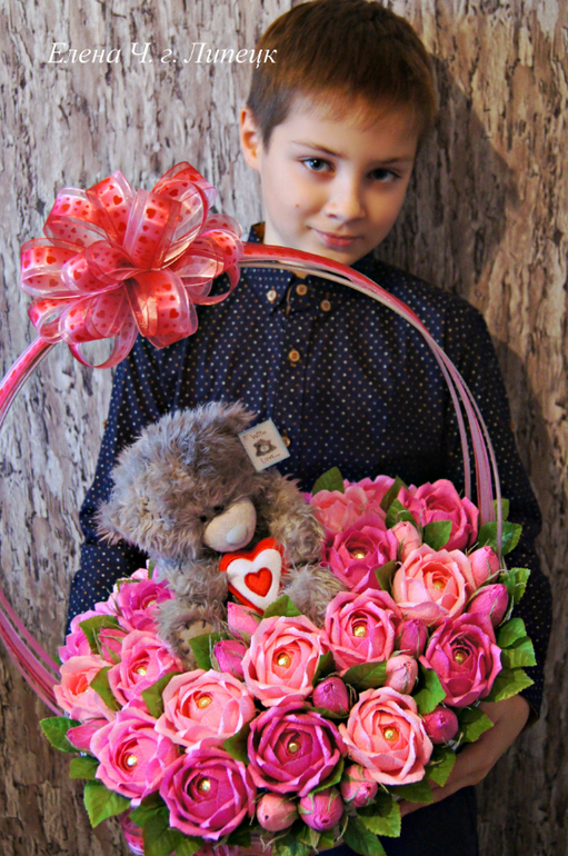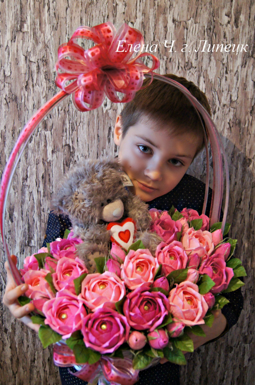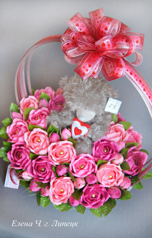 Всем привет! Нарисовалась у меня корзина с Тедди в подарок девушке от поклонника. Когда то делала похожую. Много фото под катом.