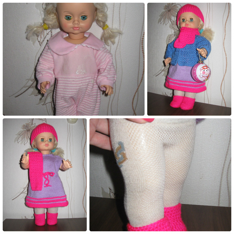 Платье на молнии сзади. Курточка на пуговках. Колготы из носка. Старую одежку в топку)