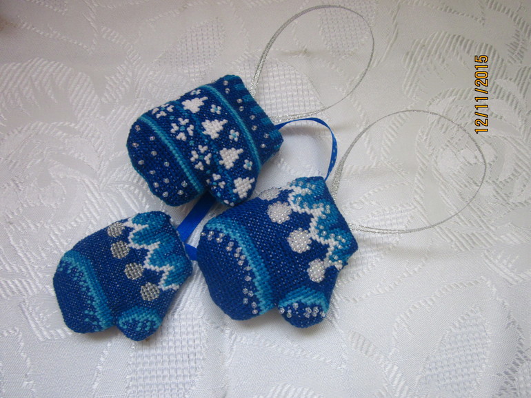 Как и многие тут я уже упорно готовлюсь к Новому году. Так как очень люблю вышивать, то конечно же и игрушки должны быть с вышивкой. Так появились вот такие миленькие варежки