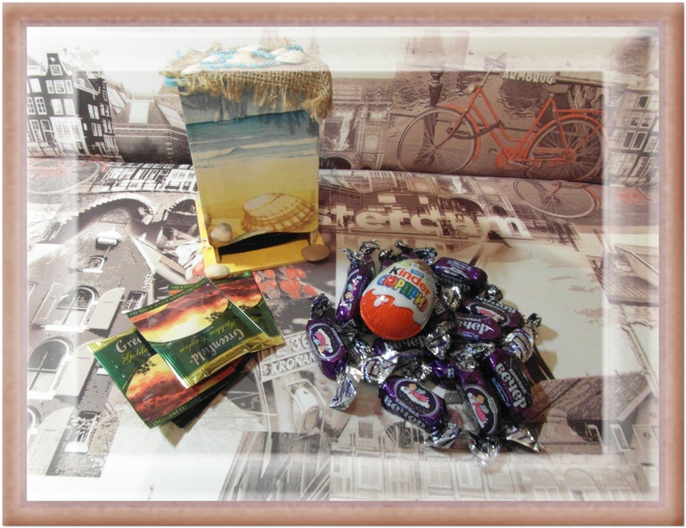 Сколько тепла в этом слоники от Светлаши. Света, огромное спасибо за мой любимый чай и конфеты. Как видишь все таки до фотосессии не дожил один Киндер. Пока фотографировала, сын его унес и покушался на второй