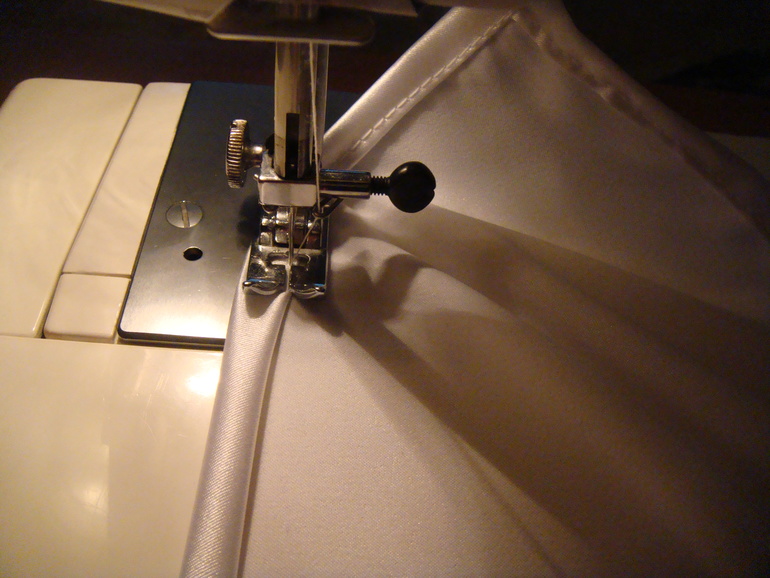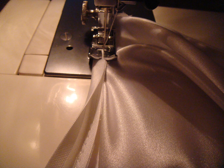 По краям рукавов пришить тесьму, одновременно подвернув под тесьму края: