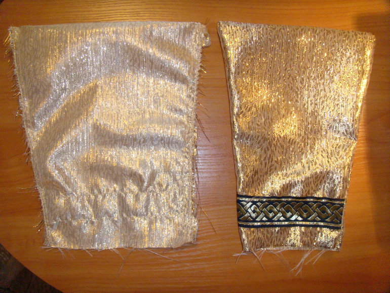 Мужчины в Древнем Египте носили небольшие передники - схенти. И нам тоже надо! Выкроила 2 детали из золотистой парчи: