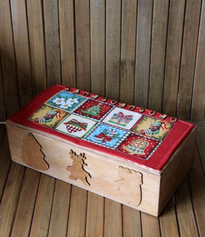 А стенки проморила остатками морилки, плоские фанерные фигурки тоже, покрыла лаком и позвала мужа. Дети рылись в гвоздиках, а муж прикручивал фигурки и панно к коробу.