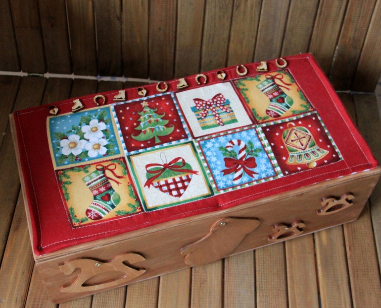 "Несовершенство" - потому что крышку планировала украсить лоскутным панно, и тут-то новичка подстерегала бяда))) Квилт мой перекосило на этапе машинной стежки, уплотняла фетром. Все вроде замеряла ровно, но на выходе получилось меньше размером,нежели крышка короба.