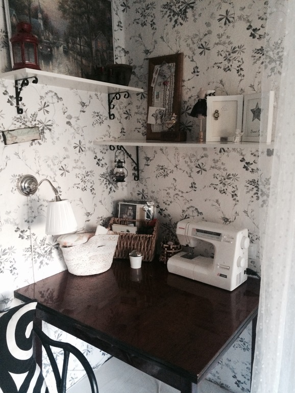 Долго я к нему шла, как только переехали у меня появился стол) мой собственный (раньше я шила на трюмо) и так со временем я отвоевала кусок комнаты и у меня полноценный угол, даже наверно 1/3 комнаты + моими тряпками полностью забит комод под телевизором, часть углового шкафа и в кладовке тоже есть несколько полок)