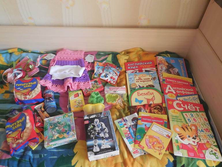 Посылка просто шикарна! Валя учла все стороны детской жизни и увлечений! Вот сколько богатств ждало нас внутри коробки.
