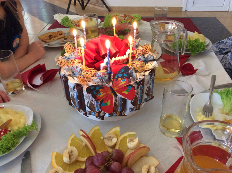Недавно мы праздновали день рождения доченьки в кафе!! Как показали предыдущие ДР, испеченный торт в большинстве случаев детки размазывают по тарелке! Поэтому пришлось как то выкручиваться!!!