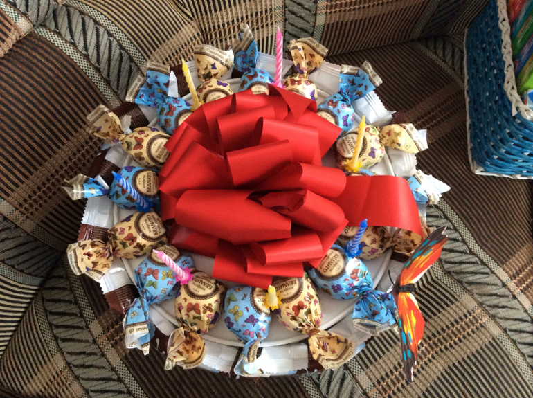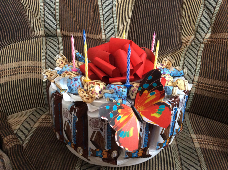 Катюшенька, спасибо большое! Деткам было интересно не внутри тортика конфетки доставать, а отрывать с тортика