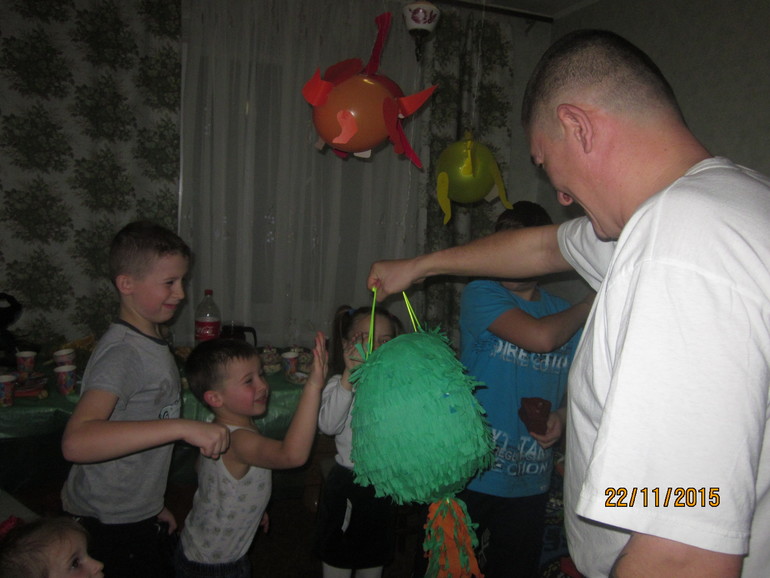 Еще была пиньята, ее толком не сфотографировала, так как дети очень быстро с ней "разобрались"