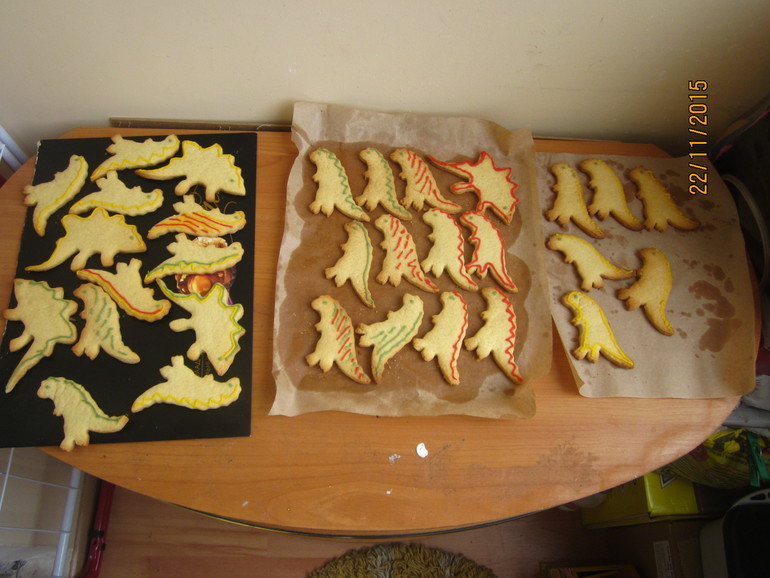 Печенье в форме динозавров, разрисовывала сахарными карандашами