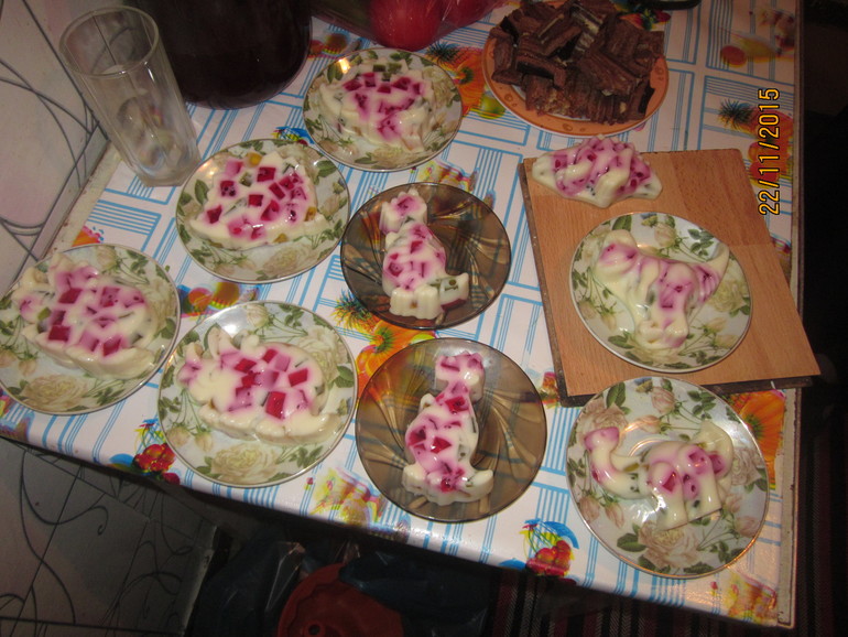 Желе тоже в форме динозавров(специально купила такие силиконовые формочки