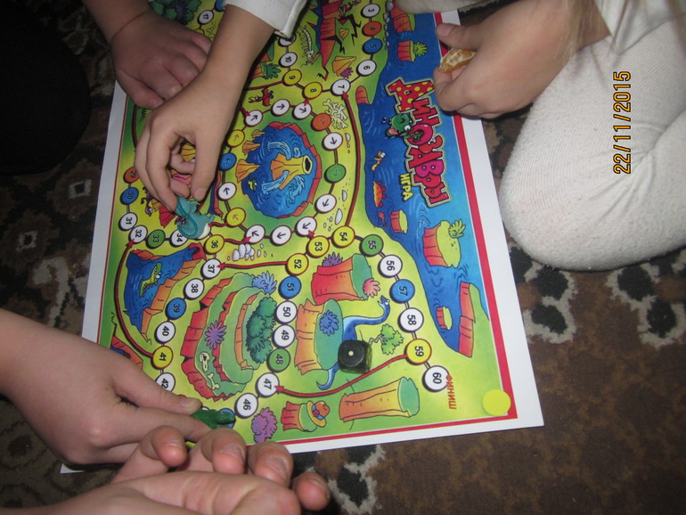 Еще из развлечений была игра-бродилка, конечно же с динозаврами