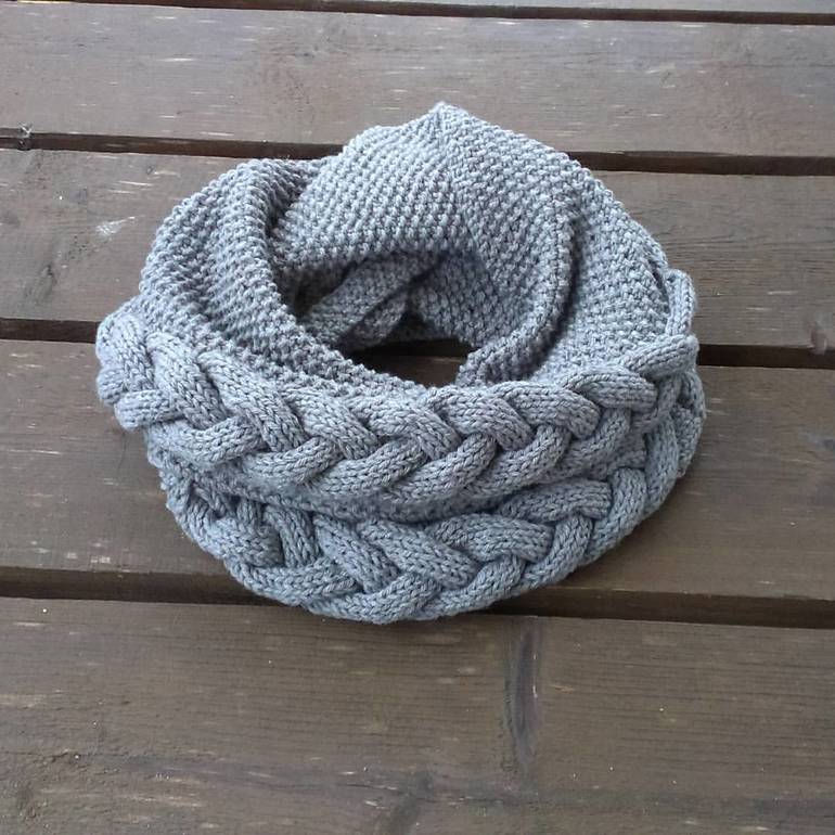 Снуд в два оборота с объемной косой.