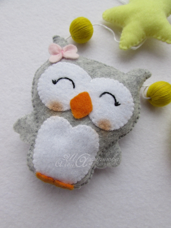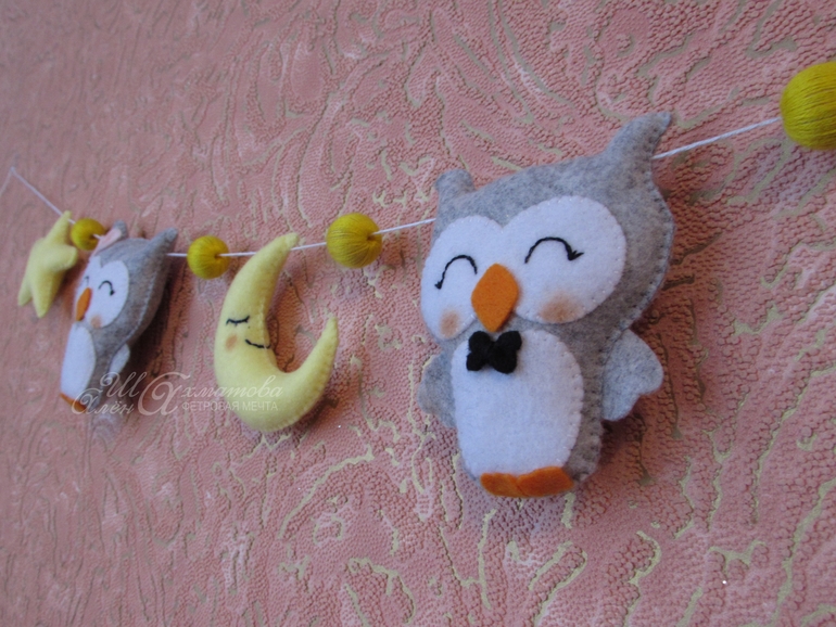 Гирлянда из фетра "Сонные совушки".