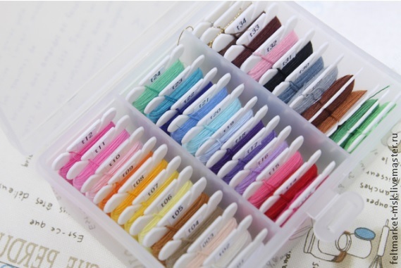 Потом пользовалась обычными мулине, тоже хороши для работы с фетром. Но неудобно ) Хотелось бы нитки в катушках.