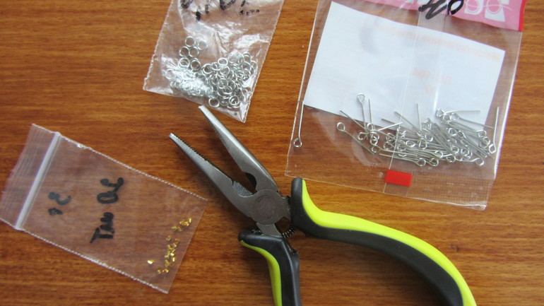 Круглогубцы, а в пакетиках штуки для того чтобы крепить бусинки ( я толком не знаю как называются), думаю те кто занимается браслетами их узнают))) Ну и сюрпризик конечно)