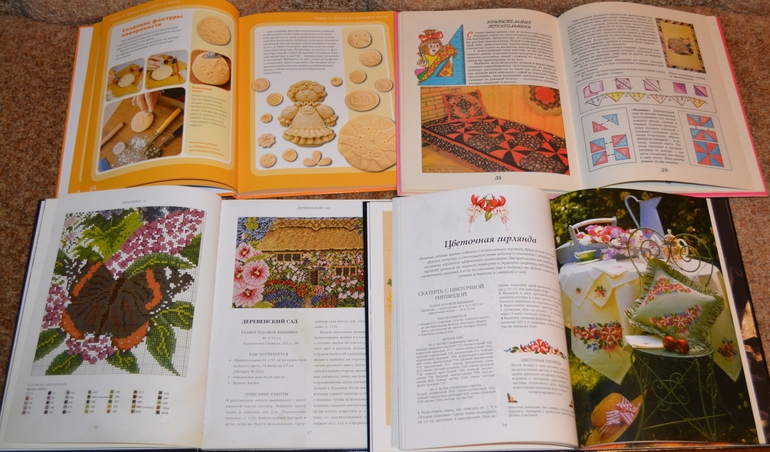 4 книги для рукоделия. Очень качественные цветные фото. Вышивка - шикарные схемы, Солёное тесто и Лоскутное шитьё - пошаговые фото.