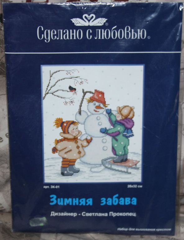 Набор для вышивания "зимние забавы" + рукодельный символ года на елочку