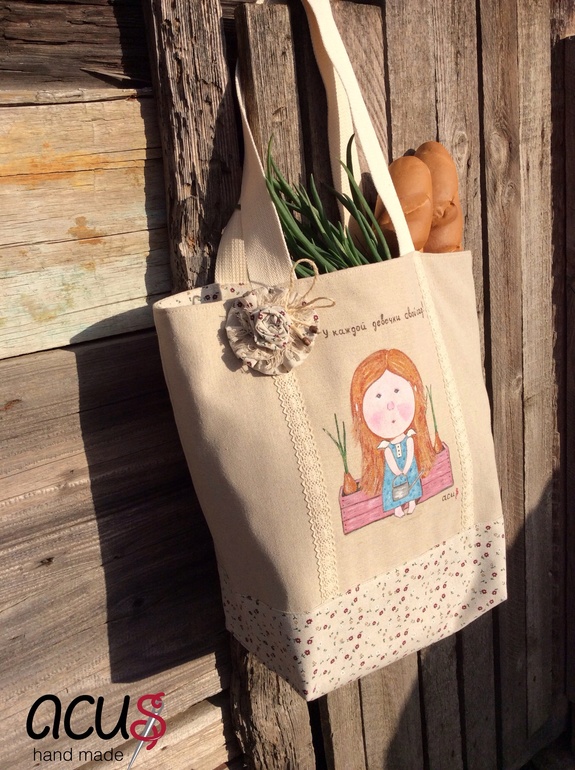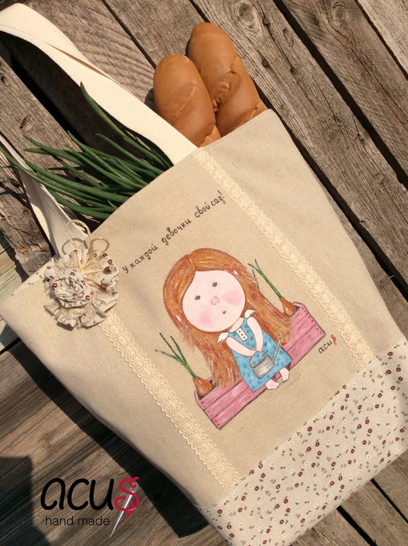 Шитье одежды, выкройки, ремонт одежды, шторы, швейные машины (уже приобретенные)Сотворилась еще одна сумка тоте, теперь с рисунком в моем исполнении по мотиву картины Е. Гапчинской " У каждой девочки свой сад!"