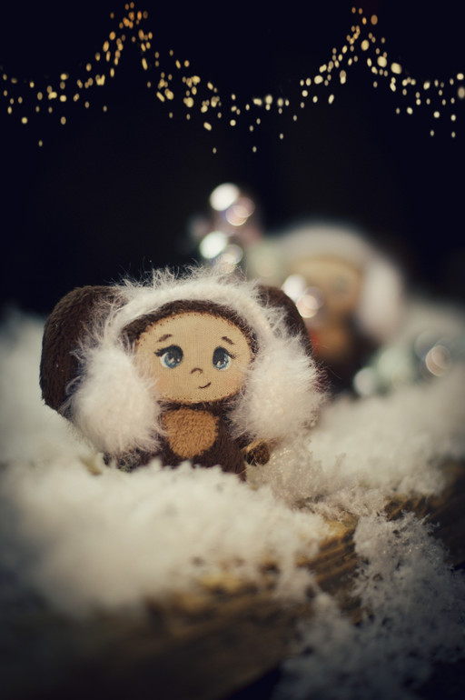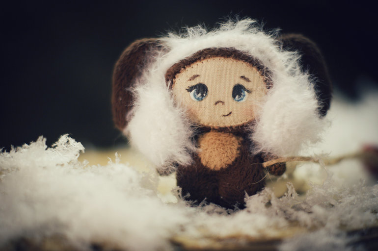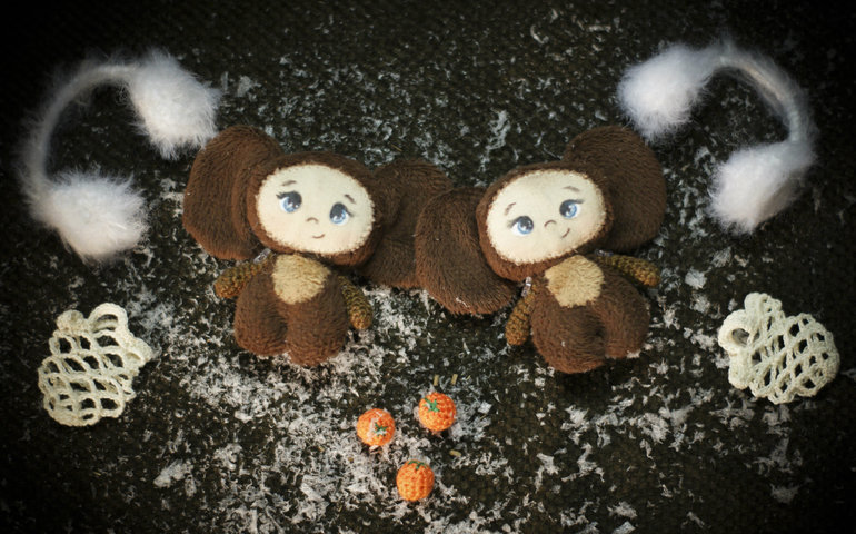 В комплекте с каждым Лапушистиком идут тёпленькие пушистые наушники, маленькая авоська ручной работы и три вязаных мандаринки)