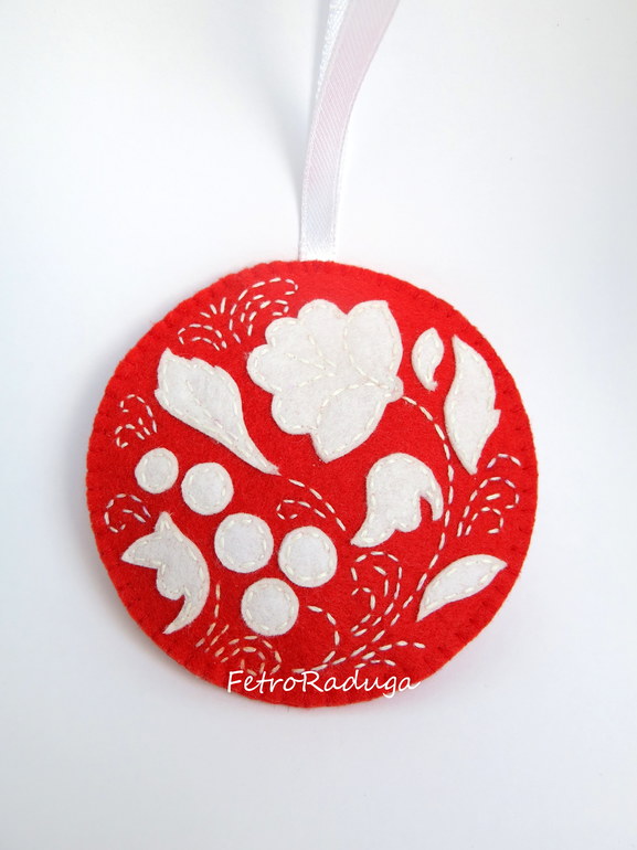 ФетрКогда-то я делала с подобными узорами Пасхальные яички. Вот теперь решила сшить и ёлочные игрушки в таком же стиле, только красно-белые.