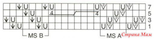 Стрелочка вниз = 1 протяжка, 1 п. снять как лицевую и протянуть её через снятую петлю;