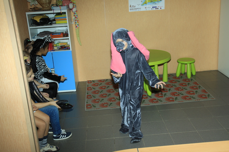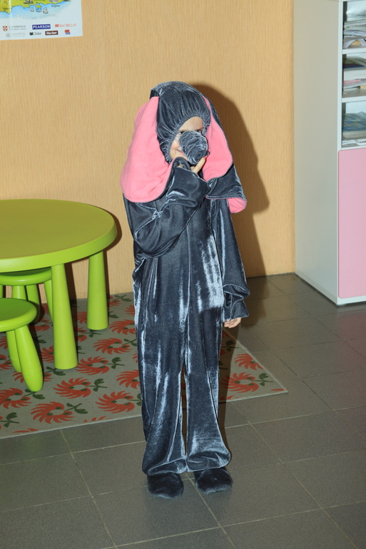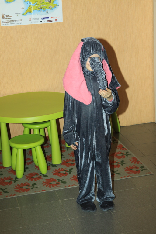 Краткая история: на английском ставили сказку про любопытного слонёнка (по Киплингу). Стасёна выбрала главную роль - того самого слонёнка, у которого должен был вытянуться нос. Костюм то я осилила быстро, а вот с носом наступила засада((( В итоге мой призыв о помощи не остался незамеченным и