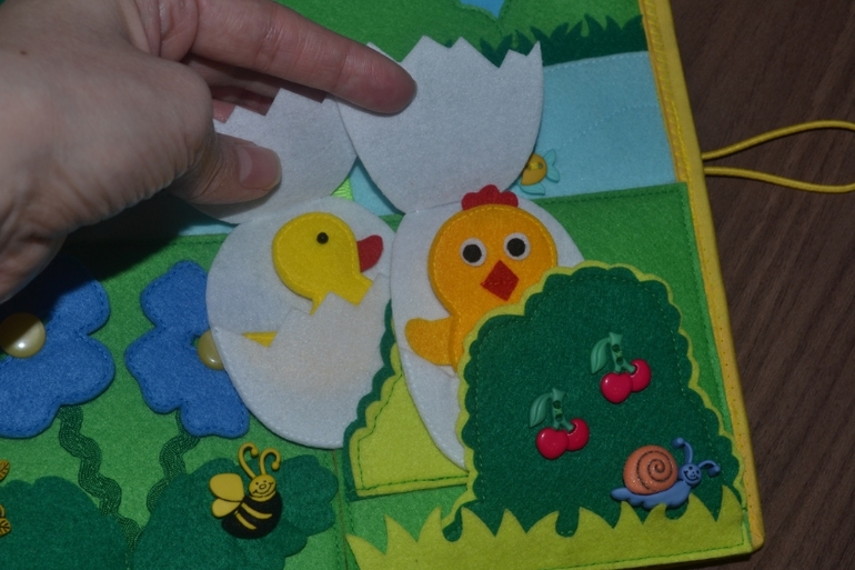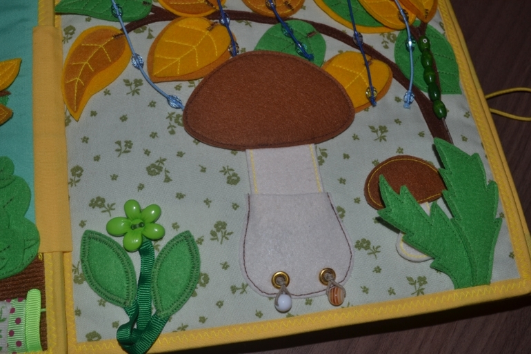 Потянули вверх, гриб и вырос( идею увидела на б.б) Маленький гриб на липучке, гусеница ползает по ветке, а за листьями спрятались бабочка и птичка