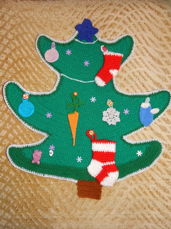 Связался в этом году Адвент календарь. Получился еще и развивающий. Игрушки вешаются на пуговички. Шарики с кармашками,в морковочку конфетка вмещается,в носочки небольшие игрушки. В варежку тоже записочку от Деда Мороза положить можно. Всего 14 игрушек. на фото не все,ребенок уже играет)))