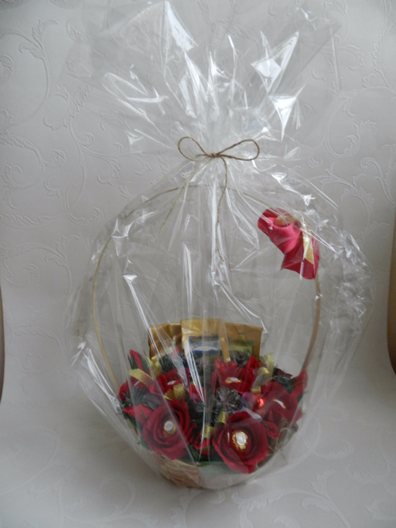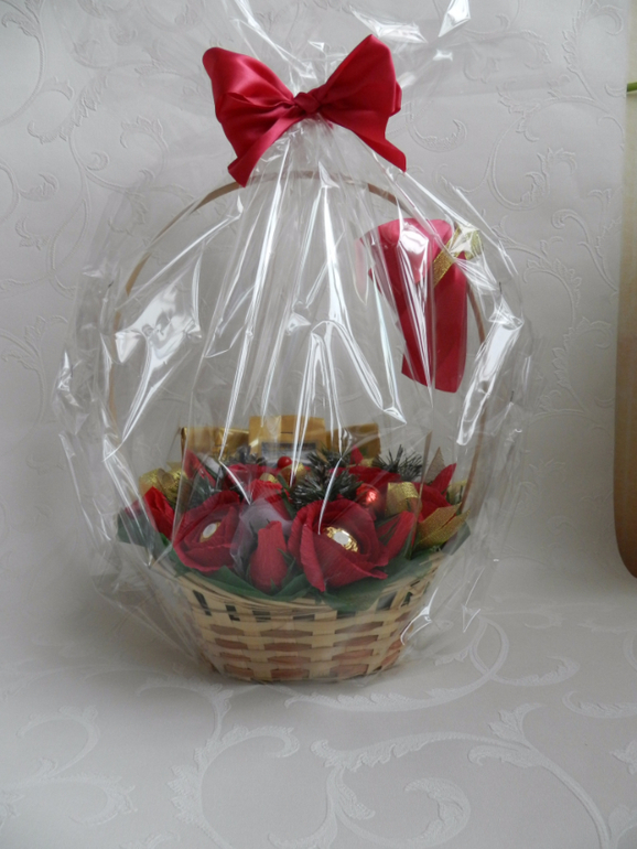 А вот с упаковкой я тоже долго мучилась, первая корзинка была с лентой