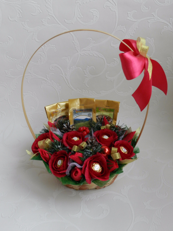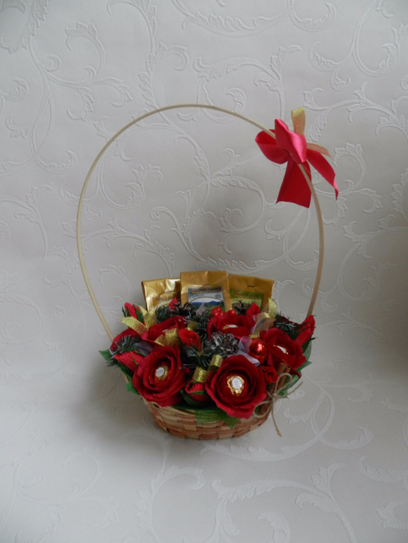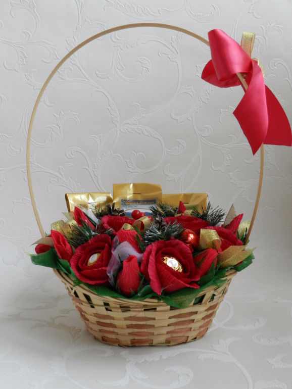 Корзинку делала в первые! До этого был опыт с букетами ( не очень большой, всего 3:))))