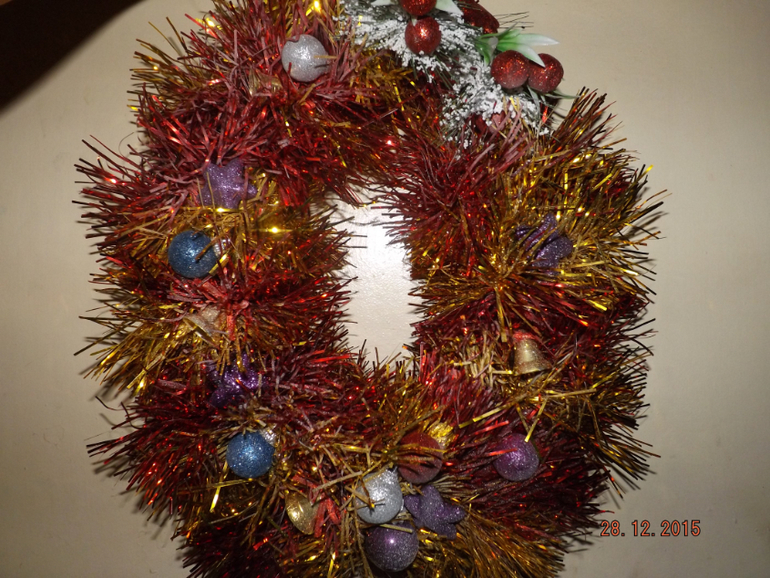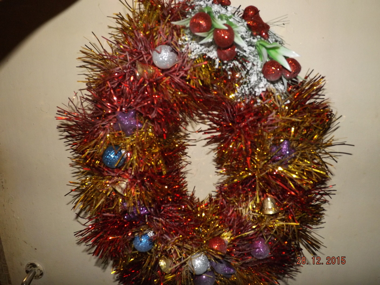 Поделки с детками.Привет всем!))вот наконец и я исполнила свою небольшую мечту-это рождественский венок и так как идет год огненной обезьянки и говорят должны быть украшения в желто-красных тонах,то и мой веночек стал таким)))