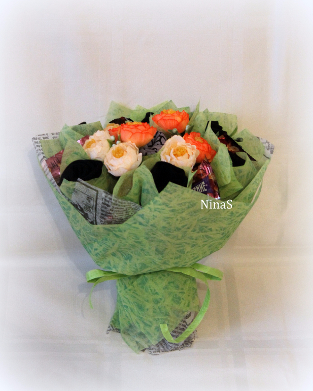 Букеты из конфет. Свитдизайн.Ну вот, осталось совсем немного и он придет, Новый год! Близко- близко уже, всех друзей и коллег с наступающим! Все всем отдала и могу вам показать, что еще сотворилось. Много фото.