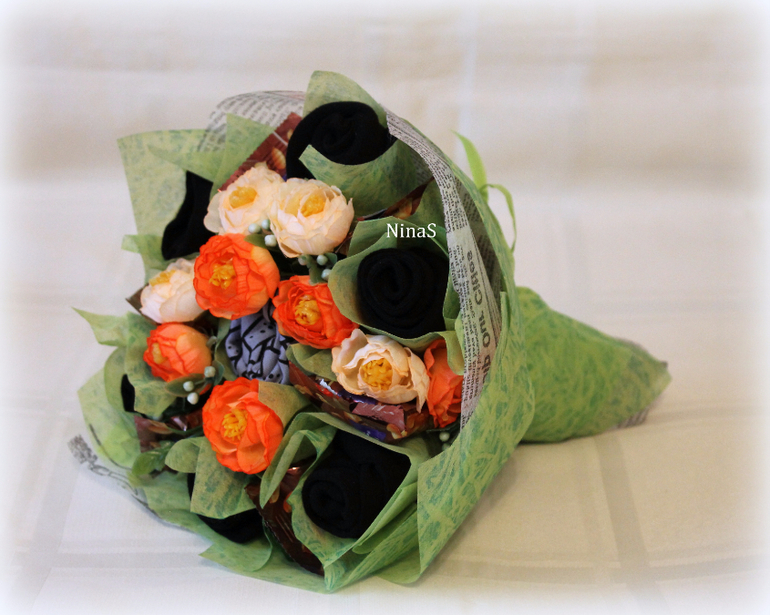 И.... немного отойдя от высокого, букет из носков, трусов и конфет! Для собственных нужд. Для тех кто смотрит на жизнь с юмором. Ведь где Новый год, там и до 23-го рукой подать.
