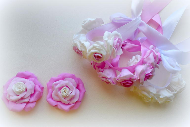 Хотела сделать розы с таким переходом, вот такой празднично-летний вариант, который можно или в резиночки приспособить..