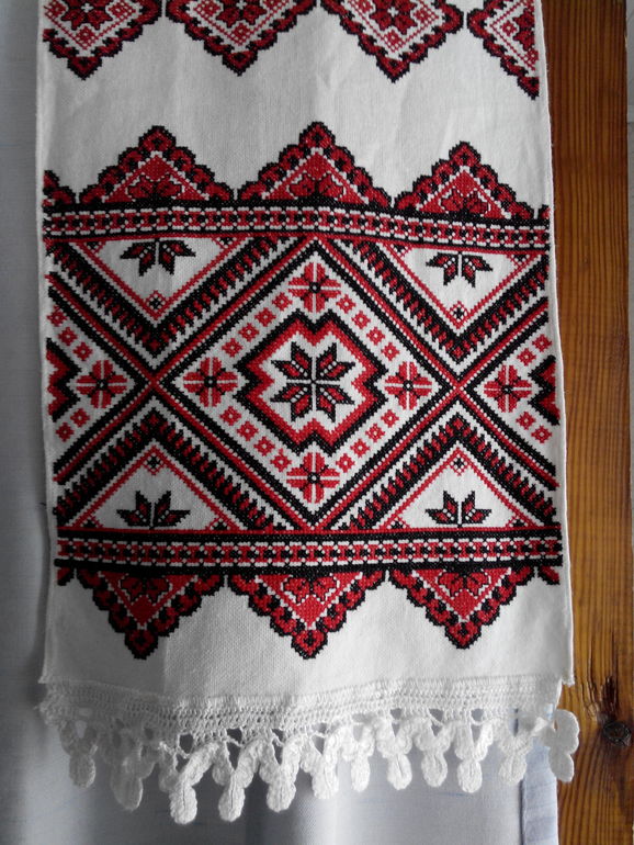 Вышивала в среднем месяца два, ткань наборная, края обработала и готово. производство ткани- Белорусь.