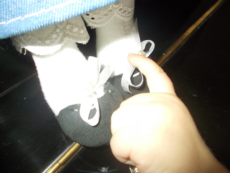 Ботиночки делала тоже сама делала из замши. Любопытный Лёня решил отметиться :-)))